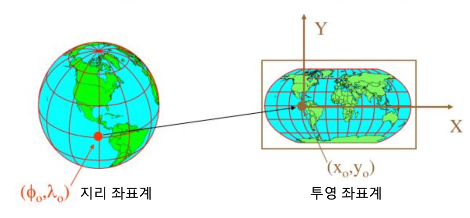 - 둥근 지구를 어떻게 평면으로 펼칠 것인가? (투영법)